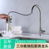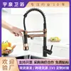 Cross-border todo de cobre, fio de níquel, trefilação, mola multifuncional, torneira de mistura, água fria e quente, torneira de cozinha rotativa de furo único