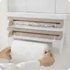 Porta Papel Toalha de Cozinha Montagem na Parede Adesivo Suporte para Lenços de Papel Prateleira para Garrafas de Molho 4 em 1 Organizador Suporte Cortador de Filme Aderente