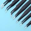 Pinças Pretas ESD Manual Aço Inoxidável Ponta Fina Precisão Eletrônica Resistente ao Desgaste Ponta Redonda Micro Antiestática Grau Industrial