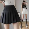 Saia plissada preta de cor sólida, feminina, estudante, estilo coreano, saia curta, cintura alta, zíper, saia feminina, primavera-verão, saia evasê, tamanho grande