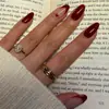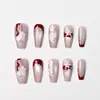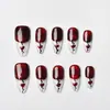 Conjunto de 24 unhas postiças de amêndoa Vermelho romântico estilo francês com padrão de coração - efeito brilhante Com 1 peça de cola de gelatina e 1 peça de lixa Adequado para festas femininas, bailes, lazer diário e uso no Dia dos Namorados para adicionar uma atmosfera romântica Removível e reutilizável