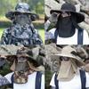 Chapéu de Sol Masculino Verão Aba Larga Anti-Uv Máscara Facial Ao Ar Livre Pesca Montanhismo Quebra-Sol Chapéu de Pescador