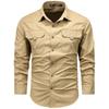 Camisa de manga comprida masculina personalizada de produção de comércio exterior transfronteiriça camisa de ferramentas de cor de outono camisa masculina de meia-idade casual colarinho camisa de polegada