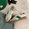 Yuanlitong 2025 Novos Sapatos de Nicho Espanhóis Tênis de Cetim Branco Estilo Celebridade da Internet Feminino Mesmo Modelo Sapatos Esportivos Estilo Universitário