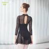 Traje de balé adulto de manga comprida com renda, traje de ginástica com gola alta, traje de dança completo para mulheres, traje de exame de arte
