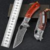 Atacado Damasco aço faca dobrável ao ar livre afiada camping faca de auto-defesa faca portátil cabo de madeira faca dobrável ao ar livre