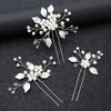Headwear de casamento nupcial Mai Lang Handmade Pearl U-Shaped Hairpin 3 Set of Gold and Silver Alloy Leaf Decoration