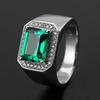 Fábrica atacado dominador anel de safira quadrada novo corindo azul quatro-garra anel de diamante micro-incrustado com broca completa anel masculino ao vivo