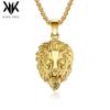 Pingente Cabeça de Leão Retrô Estilo Europeu e Americano Aço Titânio Banhado a Ouro 18K Aço Inoxidável Colar Hip-Hop Hiohop