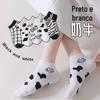 Meias Femininas Primavera e Verão Meias Curtas Femininas Preto e Branco Vaca Curta Casal Meias de Barco Meias Rasas Casuais Meias Invisíveis Masculinas