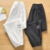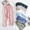 Calças anti-mosquito de seda gelo para meninas, atacado de roupas infantis, calças finas de verão para meninos, calças de uniforme escolar primário, duas barras