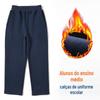 Calças esportivas forradas de lã de alunos do ensino médio, meninos e meninas, calças de uniforme escolar azul escuro, calças de moletom retas espessas de inverno