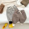 Calças casuais de veludo do bebê outono e inverno engrossado da moda listrado grande calças PP para meninos e meninas bebê inverno calças quentes para sair