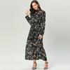 Atacado Transfronteiriço de Robes Femininos de Tecido Estampado Plus Size, Tailleurs de Saia Floral, Vestidos Estilo Étnico, Roupa Muçulmana