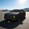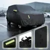 Capa de Carro Totalmente Coberta com Tecido Oxford Tiras Refletoras À Prova de Chuva e Isolante Térmico Capa de Carro Preta Camada Única Capa à Prova de Poeira Capa de Proteção Solar