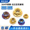 Porca flangeada hexagonal estampada de aço inoxidável titânio azul queimado com dentes antiderrapante à prova de soltura modificação porca dente de flor Especial