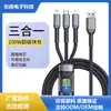 Cabo de Dados Três em Um Adequado para Huawei Apple Android Cartão Médio Transparente Carregamento Super Rápido Um para Três com Luz 100W