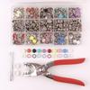 Fornecimento de fábrica 6 cores cada 20 conjuntos 633 fivela de quatro articulações + ferramenta de alicate de pressão manual 12,5 botão de metal terno de fivela de quatro articulações