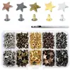 200 Conjuntos de Rebites Estrela de Cinco Pontas Embalados com Conjunto de Ferramentas DIY Decoração para Artigos de Couro Rebites Metálicos Unilaterais Tampas de Rebite