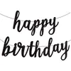 Decoração festa laser ins feliz aniversário preto dourado peça única letra banner de bandeirinhas feliz aniversário