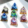 Ornamento de Pirâmide de Pedra Britada de Cristal Natural Artesanato de Resina Epóxi Decoração de Casa Criativa Display de Mesa de Escritório