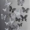 Nova decoração de feriado 3D tridimensional flash ouro e prata borboleta adesivos casamento decoração festiva pvc borboleta 12 conjuntos
