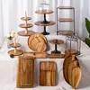 Madeira de acácia centro de mesa para sobremesas decoração de casamento aniversário adereços bandeja de madeira prato de bolo suporte para doces prateleira de exposição