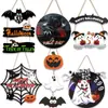 Nova Decoração de Festa em Casa no Pátio de Madeira para Halloween Pingente de Placa de Madeira Teia de Aranha Aranha Fantasma Pingente de Placa de Porta