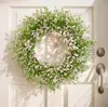 1 Peça Guirlanda Rústica de Flores Artificiais Brancas e Buxo Estilo Fazenda Guirlanda de Folhagem Floral Falsa para Porta da Frente, Flores Artificiais de Primavera Verão para Uso Externo o Ano Todo, Decoração de Parede Interna para Varanda, Hall de Entrada, Sala de Estar