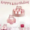Produto Novo Quente da Amazon Transfronteiriço Rosa Glitter Feliz Aniversário Letras Bandeira Feliz Aniversário e Flor