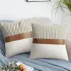 Capa de almofada listrada de lona com patchwork de couro PU para casa nova transfronteiriça Amazon Sofá Almofada de carro
