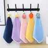 Cozinha pendurável coral lã toalha dos desenhos animados das crianças bonito lavar as mãos absorvente limpo toalha de secagem rápida atacado