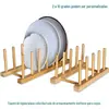 Suporte Multifuncional para Armazenamento de Pratos para Cozinha Doméstica Suporte de Exibição de Bambu Suporte para Pratos Suporte de Escorrer
