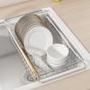 Escorredor Telescópico de Aço Inoxidável Transfronteiriço para Pia Doméstica de Cozinha Multifuncional, Cesto Escorredor para Legumes e Frutas