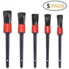 Conjunto de 5 peças de escovas de detalhes, 5 tamanhos diferentes de fibra mista, material PP, cabo de plástico, escova de limpeza de carro