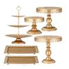 Decorações de mesa de sobremesa de casamento dourado Suporte de bolo europeu Adereços de casamento Prato de bolo de renda Suporte de sobremesa de ferro pode ser personalizado
