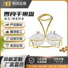 O hotel apresenta designs elegantes em duas cores, dourado e prateado, para sobremesas de bolo, com suportes de exibição de aço inoxidável.