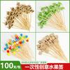 Vara de frutas por atacado 100 PCs de bambu colorido palito decorativo coquetel bar bar de frutas descartáveis garfo de frutas