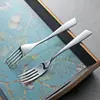 Garfo de Aço Inoxidável 304, Garfo Estilo Ocidental, Garfo de Frutas com Cabo Longo, Polido Espelhado, Talheres Convenientes, Sobremesa Estilo Ocidental