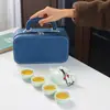 Conjunto de Chá de Viagem Kung Fu Ding Ware Cerâmica Conjunto Completo Portátil para Exterior Presentes Atacado Um Bule Duas Xícaras Quatro Xícaras