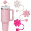 3 Peças Tampa de Canudo de Flor Compatível com Copo Stanley, Tampa de Canudo Rosa Branco para Copo Stanley