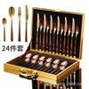 Conjunto de presente de rack para pendurar talheres de aço inoxidável de 24 peças, faca de bife estilo ocidental, garfo, conjunto de talheres de colher