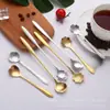 Aço Inoxidável 304 Dourado Colher Pequena Redonda Colher de Café Cabo Longo Colher para Mexer Ninho de Pássaro Doméstico Colher de Sobremesa Mel Transfronteiriço