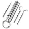 Conjunto de Palitos de Dente de Aço Inoxidável Tubo de Armazenamento Portátil Cuidado Palito de Metal Ferramenta de Limpeza Bucal Pronto para Venda