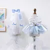 Saia Tutu Saia de Tule Primavera Verão Princesa Saia Bufante Roupa para Pet Saia de Fio de Vidro Azul Branco + Véu da Cinderela