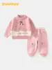 Conjunto de Roupa Duuduu de Duas Peças Outono e Inverno para Bebê de Um Ano, Conjunto de Moletom Infantil Estilo Coreano, Roupas para Meninas