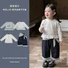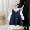 Outono Ins Roupas Infantis Europeias e Americanas Vestido Terno Estilo Preppy para Meninas Estilo Coreano Estilo Bebê Camisa Vestido Conjunto de Duas Peças