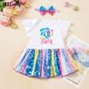 Conjunto Europeu de Verão 26 Manga Curta Infantil Unicórnio Cartoon Gola Redonda Estampado Conjunto Duas Peças para Meninas Em Estoque