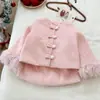 Doce e FofaMenina Doce! Casaco de Outono e Inverno para Bebê Menina com Punhos de Pelo Estilo Chanel, Conjunto Elegante de Saia Aconchegante