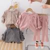 Roupa de Outono para Meninas 2025 Nova Moda Elegante Infantil Primavera e Outono Roupa de Menina Bebê Estilo Coreano Conjunto de Tricô de Três Peças
